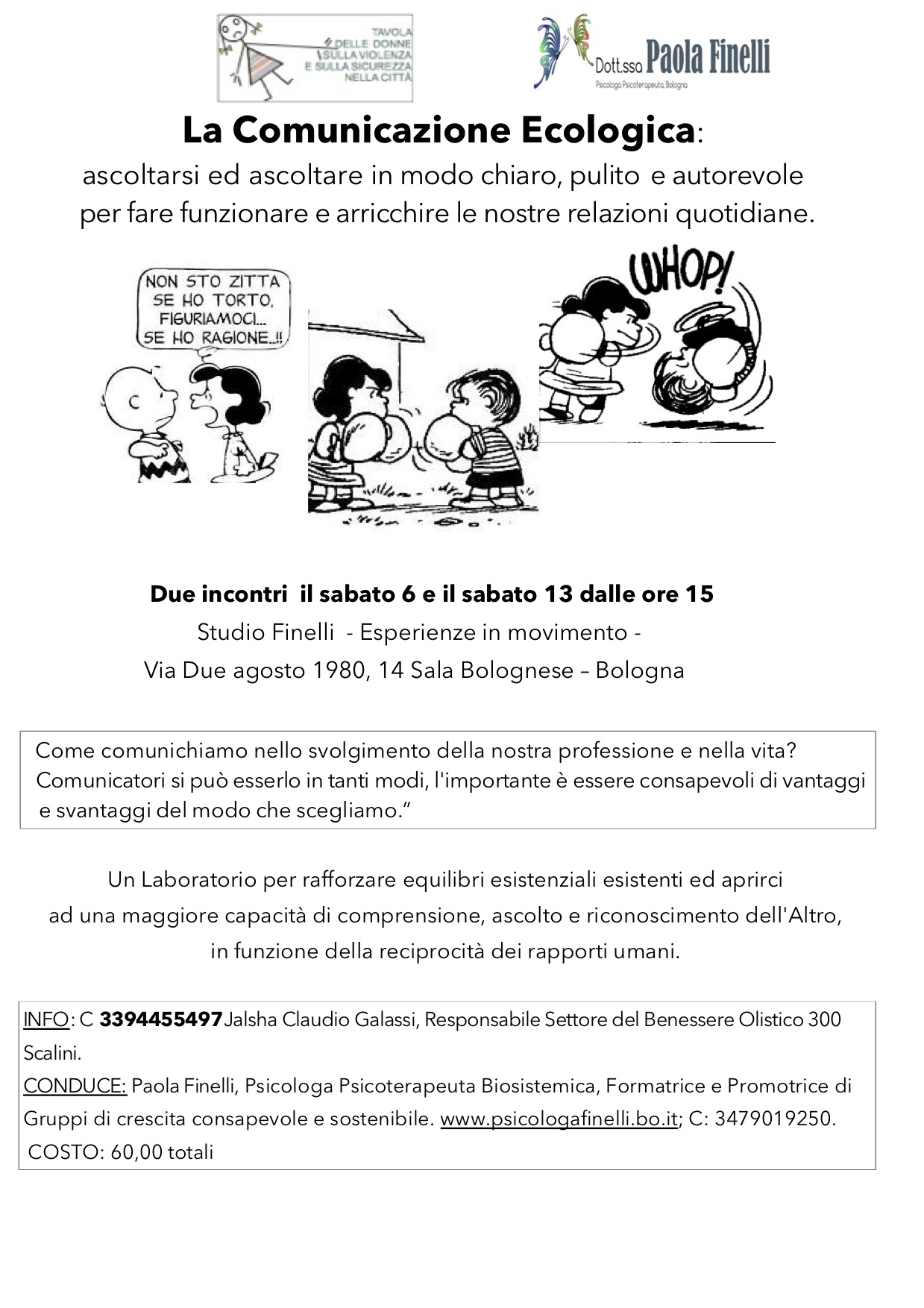 La Comunicazione Ecologica: ascoltarsi ed ascoltare in modo chiaro, pulito e autorevole per fare funzionare e arricchire le nostre relazioni quotidiane.